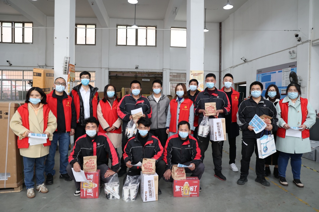 慰問(wèn)組先后來(lái)到順豐快遞網(wǎng)點(diǎn)、公司保安室、高速路口,了解一線防疫人員的工作狀況,向一直堅(jiān)守工作崗位的他們表示衷心感謝,并送上口罩、蛋糕、漢堡、雞腿、飲料等慰問(wèn)品。